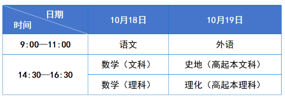 1.高中起点升本、专科考试时间表
